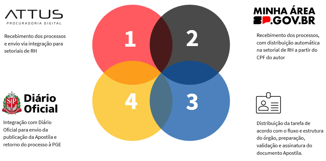 Com a integração do sistema Attus da Procuradoria Geral do Estado (PGE) à Minha Área SP.GOV.BR, será possível que os pedidos de apostilamento feitos pela PGE sejam encaminhados de forma unificada para todos os Órgãos do Estado de São Paulo, melhorando a qualidade e agilidade dos serviços.